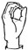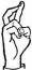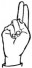 На ћирилици написано МИОМИРА ГОНЕВ састоји се из 12 слова [?]. Исписано ћириличном једноручном азбуком за глувонеме: