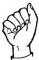 На ћирилици написано МИОМИРА ГОНЕВ састоји се из 12 слова [?]. Исписано ћириличном једноручном азбуком за глувонеме: